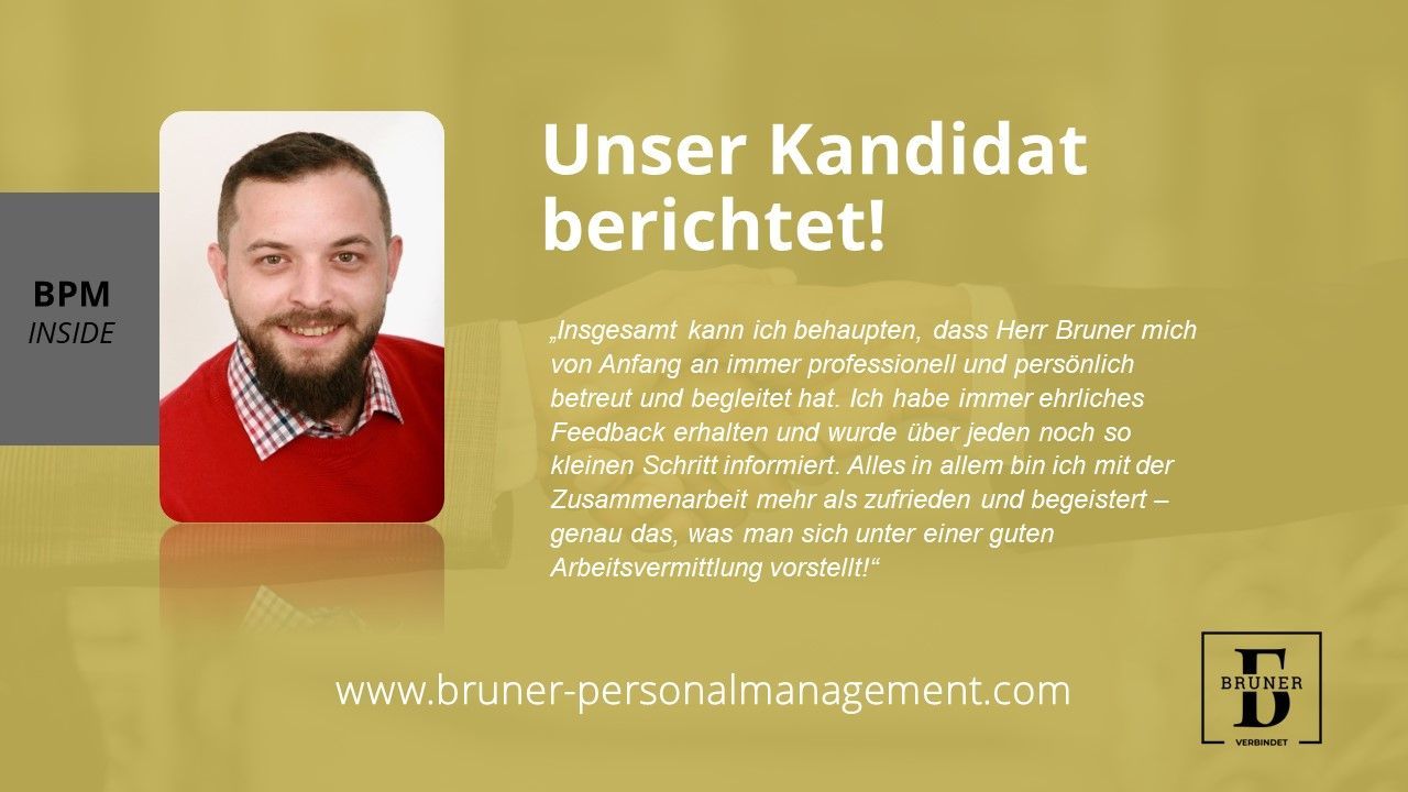 Auf meiner Suche nach einer neuen Arbeitsstelle wurde ich von Herrn Bruner auf einem Jobportal angeschrieben und mir wurde ein unverbindliches Gespräch zu einer Stellenausschreibung angeboten. Nach einem kurzen telefonischen Kennenlernen vereinbarten wir einen Termin für ein Online-Meeting. Die Gespräche waren immer sehr freundlich und ich merkte, dass Herr Bruner nicht darauf aus war eine Vakanz schnellstmöglich zu besetzen. Viel mehr bekam ich das Gefühl, dass meine Person, meine Fähigkeiten, mein bisheriger Werdegang und meine Ziele und Visionen in den Mittelpunkt der Vermittlung rückten. Durch die Gespräche und die gemeinsame Analyse meiner Fähigkeiten wurde klar, dass der Job als Servicetechniker im Bereich CNC-Maschinen genau das Richtige für mich ist. Vor einem Bewerbungsgespräch bekam ich neben einer „normalen“ Stellenbeschreibung weitere Informationen zum jeweiligen Unternehmen und auch eine Beurteilung darüber, inwiefern die ausgeschriebene Stelle und die Firma zu mir passen. Durch die Vorbereitung zu den Vorstellungsgesprächen konnte ich meine Stärken und meine Motivation hervorheben und meine Nervosität minimieren. Das Coaching durch Herrn Bruner empfand ich dabei sehr positiv: Ich sollte keine Musterantworten auswendig lernen, sondern ich bekam von ihm die richtigen Impulse, um im Bewerbungsgespräch souverän und sicher aufzutreten. Insgesamt kann ich behaupten, dass Herr Bruner mich von Anfang an immer professionell und persönlich betreut und begleitet hat. Ich habe immer ehrliches Feedback erhalten und wurde über jeden noch so kleinen Schritt informiert. Alles in allem bin ich mit der Zusammenarbeit mehr als zufrieden und begeistert – genau das, was man sich unter einer guten Arbeitsvermittlung vorstellt! Ich habe meinen Traumjob bei Trident als Servicetechniker für HAAS CNC-Maschinen gefunden – dank der Hilfe von Bruner Personalmanagement! Vielen Dank Herr Bruner!